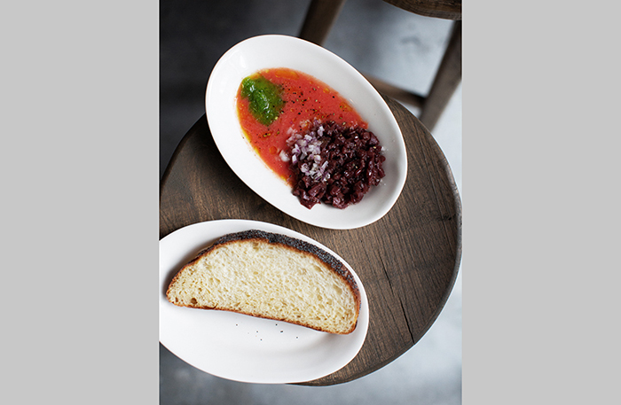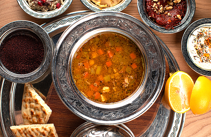 В Lira белоснежные стены и зеленые пальмы, деревянные круглые столы из красиво состаренных досок. Огромный зал, есть уютный альков человек на восемь. Перед тем как я перейду к блюдам, расскажу про шефа. Азиз родом из Турции. Работал в знаменитом трехзвездочном ресторане Noma. Два года был flying chef в «Турецких авиалиниях»: готовил для пассажиров первого класса. Его жена наполовину белоруска, наполовину американка. Вот такой интересный микс культур. Такой же микс я увидела и в кухне: собрано все дорогое ближневосточному сердцу. Бабагануш и хайдари по рецепту бабушки Азиза. Салат табуле и марокканский таджин с ягненком, бататом, миндалем и инжиром. В Lira дают шакшуку — но не ту, к которой мы привыкли, а ближневосточное овощное блюдо, напоминает аджапсандали. Особое внимание уделяется мясу на мангале. Одной баранины тут четыре вида, есть редкий для московских ресторанов шашлык из бараньей печени.