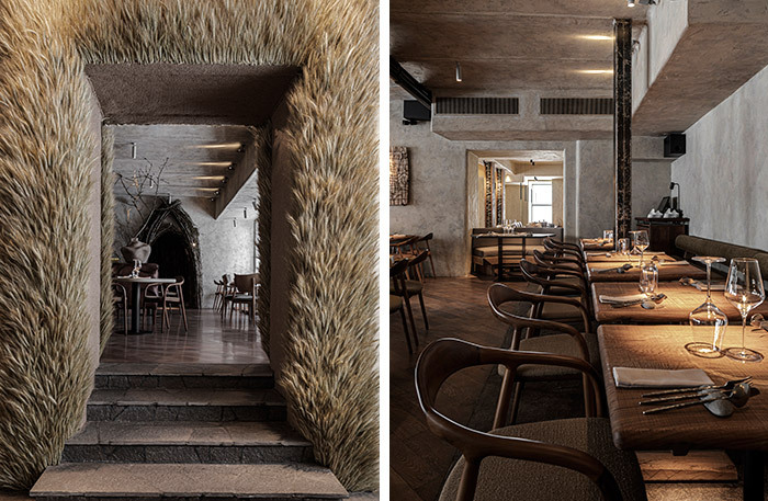 Интерьер выполнен в светлых тонах, много элементов, которые отсылают нас к первобытным корням, все деликатно, с отличным сторителлингом. В этом пространстве приятно находиться, при этом оно остается активным и модным. Максим, гест-менеджер, историк по образованию, может провести экскурсию, уже есть гости (девушки), которые при бронировании просят записать их «на лекцию Максима». Что сказать, рядом МГЛУ, тяга к знаниям. И тут правда есть что обсудить: от рун на приборах до арки из орешника и портала из пшеницы.