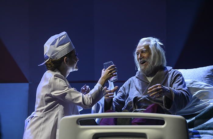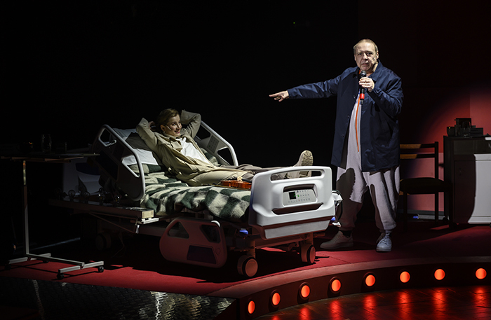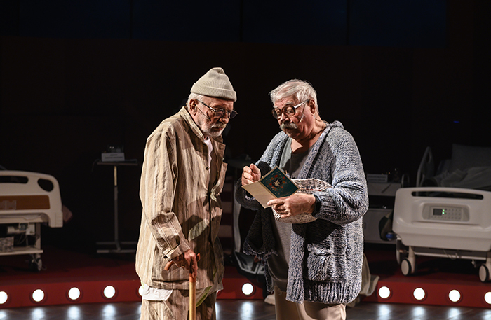 В этой истории — пять героев. Они некогда известные артисты. Для всех театр сродни наркотику. Даже оказавшись в доме престарелых, они скучают по сцене, продолжают играть в мечтах и наяву и даже строят планы поставить «Отелло». Говорят цитатами, живут воспоминаниями. Поэтому дом престарелых здесь не помещение с серыми стенами, а алая полукруглая сцена, койки с подсветкой, стойки для капельниц, в которые помещают микрофоны. «Больничное кабаре» — так определяют жанр этого спектакля в МХТ.