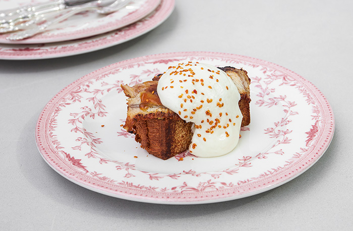Особо отмечу идеально сбалансированное севиче из северных креветок с помело и соусом каламанси — в меню это блюдо стоит всего 590 рублей. Свежемаринованные артишоки с черной икрой и пюре из топинамбура выглядят элегантно, но я артишоки больше люблю живые на гриле, а не маринованные. Буррата с пармой и дрессингом из базилика — ярко-зеленая весна в тарелке (790 рублей). King Crab and Chis со спаржей (990 рублей) и сытный French toast c угрем (590 рублей) будут отлично потом смотреться в завтраках. А тартар из говядины с маринованной щучьей икрой с чипсами из картофеля полюбится всем, кто помнит Алексея со времен Nordic, — это такой привет от викингов по качеству мяса и с брутальным вкусом, который растапливается под вашу улыбку.