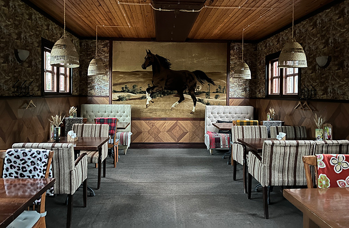 В городе их несколько. Идеальный семейный ресторан с детскими комнатами, площадками и манящим запахом с дымком. В кафе «Старый Мельник. Фаzooнда» есть мини-зоопарк, и ресторан выглядит как деревянная дача с видом на озеро. В ресторане пять уровней, хотя с виду он выглядит миниатюрным теремком, под потолком зал на десять человек с низкими потолками — ощущение, что ты в кают-компании на корабле из фильма «Дети капитана Гранта».