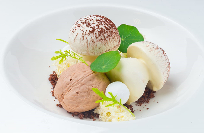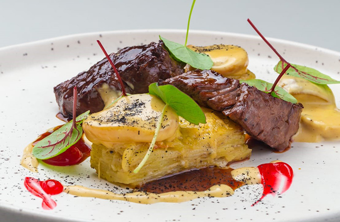 В «Мельнике» делают свой джин на малине и угощают непривычным нам хвостом бобра (на вкус как масляная рыба). Хвост бобра — идеальная закуска к водке, снегу и кесадилье — такие вот гастрономические миксы практикуют тут зимой на улице. В Фаzooнда есть дикое меню: колбаса из лося, лопатка молодой косули, карбонад из дикого кабана, жаркое из лося с брусникой. В кафе «Старый Мельник. Гнездо» можно отлично провести вечер — благодаря сосновому лесу и фонарикам тут всегда немного Новый год. А еще в «Гнезде» шикарный грибной суп, риет из сома, пельмени с бобром со снегом из сметаны и дымком от азота и тот самый эталонный калинник на десерт.
