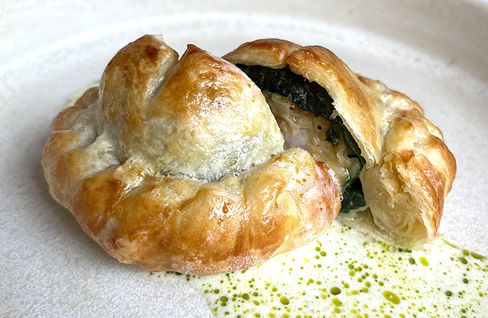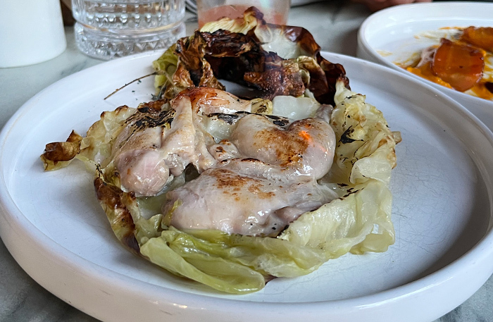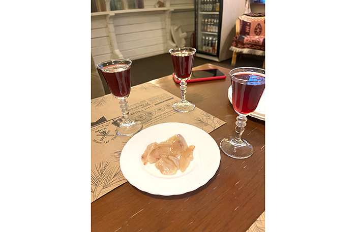Внутри прослойка из калины, отсюда и название «калинник». Исторически калинник запекали в капустном листе, своеобразном старорусском «пергаменте», а теперь этот экологичный прием используется местными шеф-поварами в приготовлении и других блюд. В ресторане я попробовала еще один местный специалитет: курник, пирог из курицы с блинами и сыром. Горячий, сытный. С собой в качестве сувенира можно взять замороженный курник, и дома он получается такой же вкусный.
