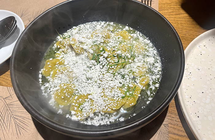 Традиционно всех туристов, приезжающих в Рязань, ведут в этот купеческий ресторан, он расположен в современном бизнес-центре, но сделан красиво, с элементами модерна и внушительными деревянными дверями, в которых стоят окна с травлением — декораторский прием, который я видела только в дореволюционных домах Петербурга. В ресторане есть своя сыроварня на минус первом этаже, а в самом ресторане очень красивый интерьер и коллекция фарфора, значительная часть которой представлена птицами. Из меню покорила меня свекольная плетеница с вишневым соусом и мороженым из козьего сыра и суп-пюре из крапивы с сырно-картофельными пончиками и пряным песто из крапивы.