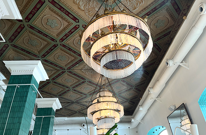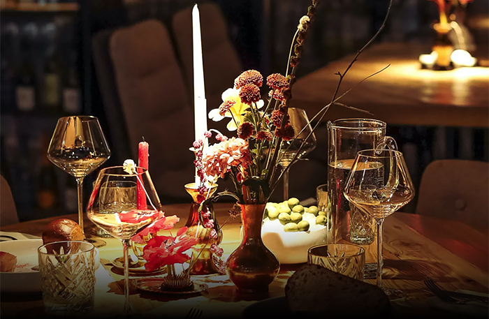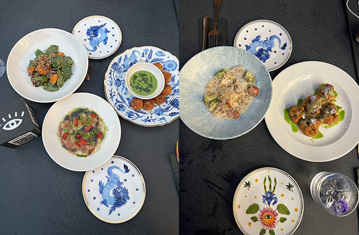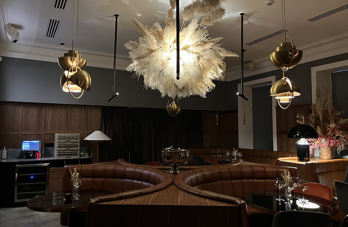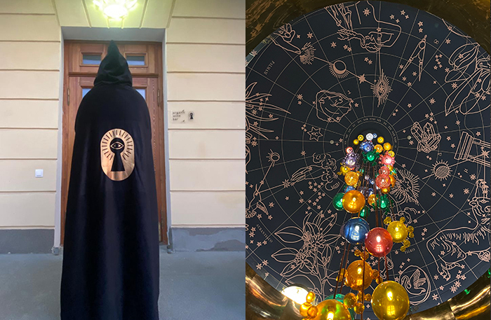 3. Вечером отправляемся в ресторан Sekta — винное место в духе Петербурга с культом луны, вина и элементами магии. Интерьер залов завораживает: центральный купол-потолок красиво разрисован зодиакальными символами, а три пространства — «Винотека», «Кабинет» и «Антресоль» — подойдут под разные форматы вечера. Мы расположились на веранде, чтобы любоваться зданиями 1824 года постройки в классическом петербуржском стиле. Очень красивая посуда, в меню — легкие закуски, идеально, если вы хотите прекрасно провести вечер и не лопнуть. А если вы замерзли, вам дают пледы со знаком тайного общества.