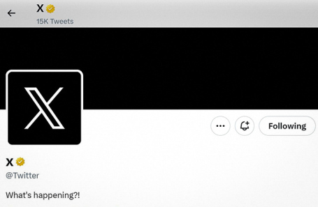 Официальный аккаунт компании Twitter (соцсеть заблокирована в РФ) сменил название на X, его аватар поменялся с традиционного голубого логотипа с птицей на крупную белую букву X на черном фоне.