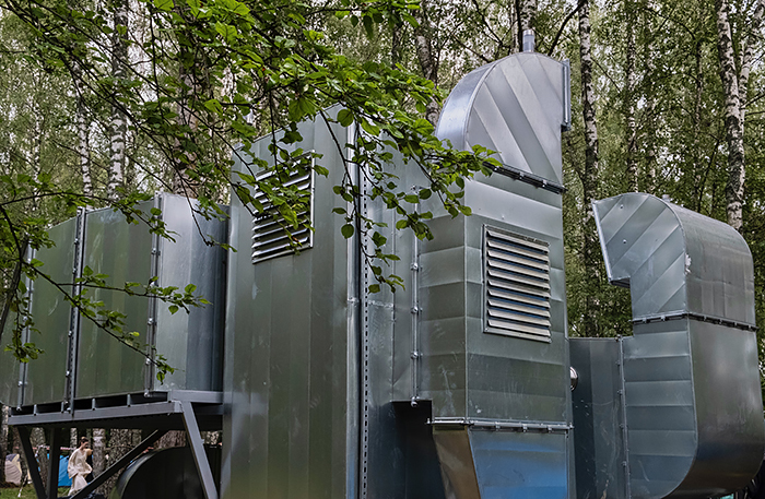 — У нас была 3D-модель. Разложили ее на детали, отправили на завод, который занимается профильно этой историей, такими коробами. И когда нам прислали счет — я не буду называть цифру, но он оказался несущественным. Это не то чтоб очень дорогой дом, но в нем очень много мелочей важных, которые надо было продумать, чтоб это все функционировало. Вообще, функциональное значение этих вентиляционных коробов — проводить воздух. Чтоб адаптировать их для жилья, нам пришлось решить ряд важных вопросов. Мы прибегли, в том числе, к технологиям, которые используются в автопроме.