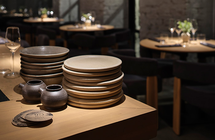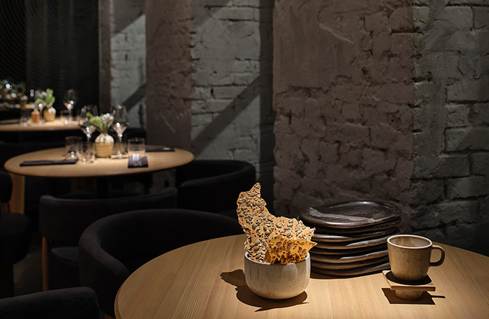 В ресторане полумрак, поэтому все на столе раздачи работает как декорации под софитами. Теплота керамической посуды цвета среза книг, которую ребята делают у себя в мастерской «Яркэ», стоит стопками и участвует в действии. А я уже встала в очередь на их вазы.