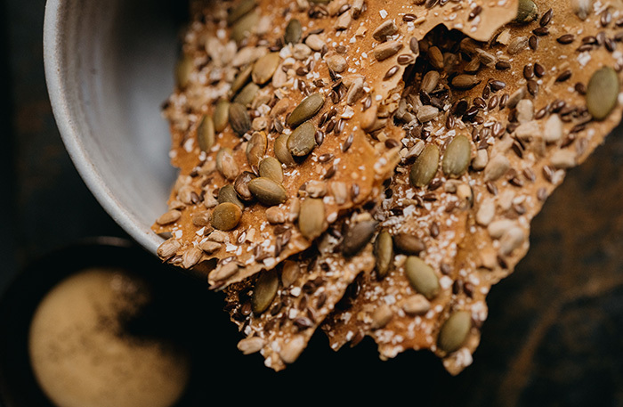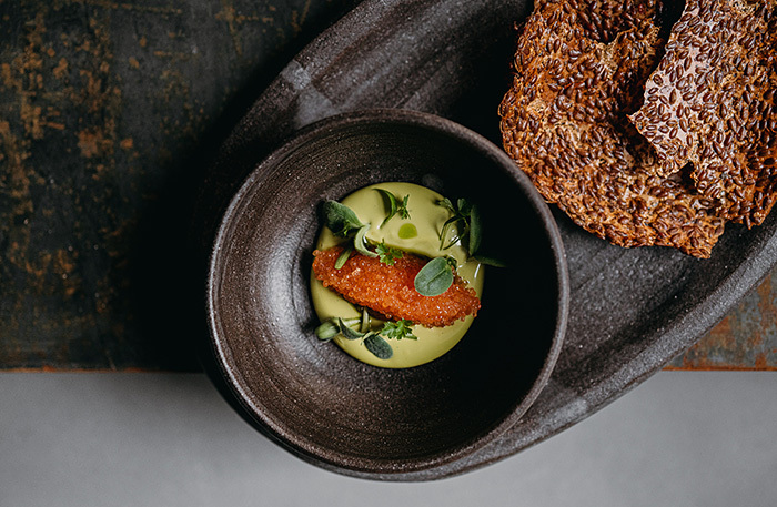 • льняные пластинки с огуречным соусом и икрой сига. Саша — гений всевозможных чипсов. Этот льняной в рыбьем соусе — signature dish;