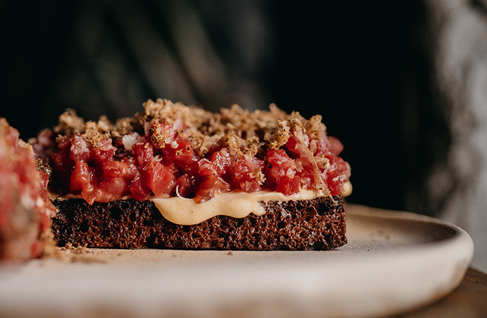 Из красноярского меню в 0,75 please Moscow не больше пяти блюд. Москва задает свой вектор вкуса, адаптируясь под широкую продуктовую базу столицы и ее особенности. Сморреброд становится безглютеновым, салат из языка с кабачком — похожим на тоннато. Уклон в нордик, но с сильным ДНК Сибири. Еда, которую хочется не только гонять во рту, но и в голове. Еда со смыслом.