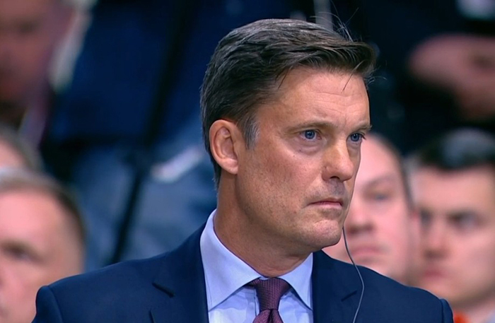 Микрофон у Героя России Евгения Поддубного. Вопрос о водоснабжении Донбасса. Вода в дома подается нерегулярно, низкого качества. На верхних этажах нет воды вообще.