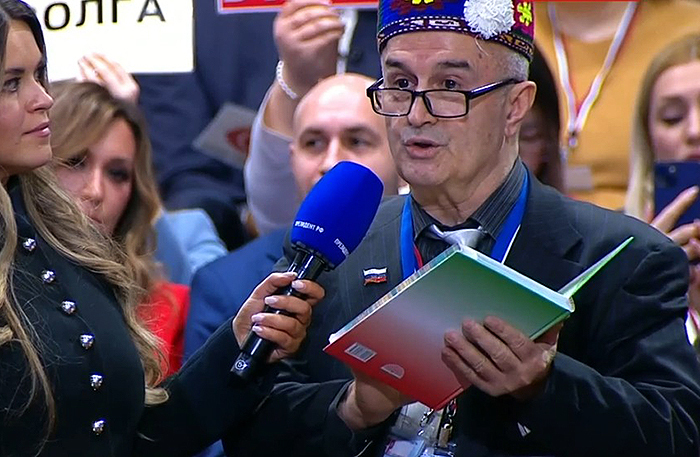 Вопрос: какой шеврон надел бы Путин в год единства народов? И какие меры будут приняты для поддержки этих народов? Также журналист попросил поддержать новый якутский фильм о Герое России, который скоро выходит на экраны.