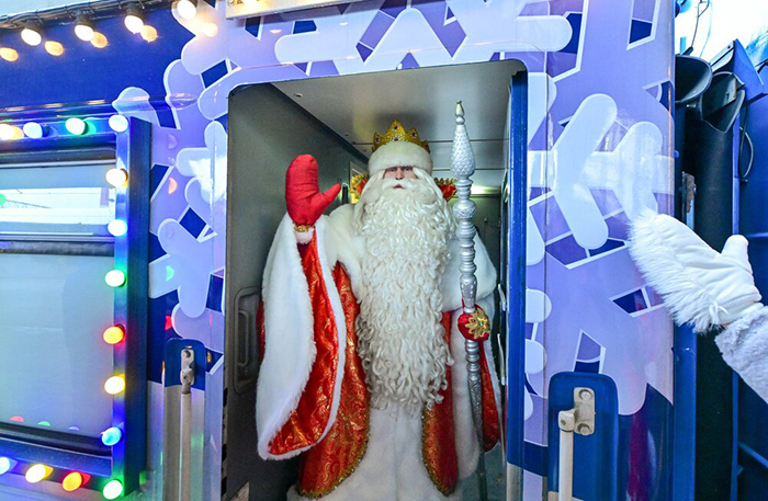 Поездка новогоднего состава стартовала 19 ноября из Владивостока, всего поезд Деда Мороза проедет 70 городов. В Великий Устюг он прибудет 11 января.