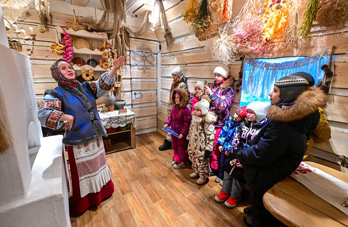 Он прибыл на Киевский вокзал и пробудет в столице два дня. В составе — бесплатные тематические вагоны, а также вагоны, куда необходимо купить билеты, есть анимационная программа. Затем поезд отправится в Великие Луки и далее последует в Великий Устюг