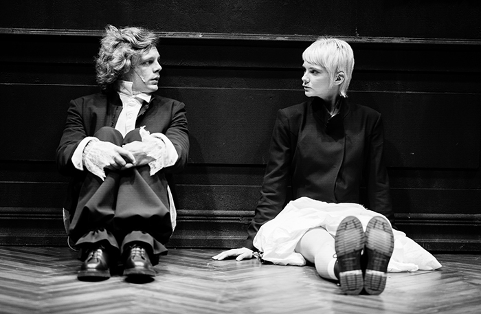 Короля исполняют в разных составах трое артистов, среди них Лев Зулькарнаев из «Слова пацана». Мы увидели короля в исполнении Дениса Парамонова из МХТ имени Чехова, и это отличное попадание в образ: